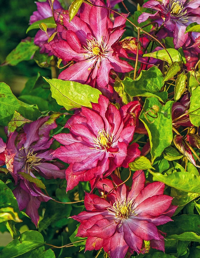 Применение,особенностиКлематис Kaen – невероятное по расцветке растение. Используется для посадки в зонах отдыха. Можно задекорировать входные зоны, арки. Изысканно смотрится в одиночной и групповой разноуровневой композиции. Из клематиса создают цветные колонны, бордюры. Каен можно использовать как почвопокровное растение на открытых участках.КустКлематис Каен - восхитительное растение с крупными махровыми цветами. Вырастает до 2-2,5м в длину. Для большей пышности, чтобы стимулировать активный прирост боковых побегов, в первый год необходимо удалить все бутоны, и прищепнуть макушку.ЛистьяУ клематиса Каен листочки сочные ярко-зеленого цвета, удлиненные с заостренным кончиком.Цветы/соцветияЦветки махровые и полумахровые, до 14см в диаметре. В бутонах зеленые, раскрываясь, постепенно меняют окраску до красно-розового цвета. Кончики лепестков заостренные, имеют более светлый тон. Цветение в мае-сентябре.Возраст саженца1 годУсловия выращиванияОчень важно хорошо укрыть побеги на зиму.Группа обрезки2