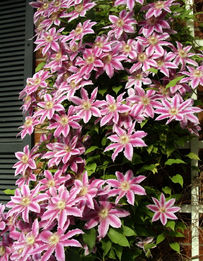 Применение,особенностиПодходит для выращивания у решёток, сеток и других садовых опор.КустЭто лиана, вырастающая до высоты 2-3 метров.ЛистьяЛистья ярко-зеленыепродолговатыеЦветы/соцветияКрупные цветки диаметром до 20 см с белой окраской с малиновой продольной полосой в середине лепестка, и с золотисто-желтой короной тычинок в центре – необыкновенно выразительны.Возраст саженца1 годУсловия выращиванияОчень важно хорошо укрыть побеги на зиму.Группа обрезки2