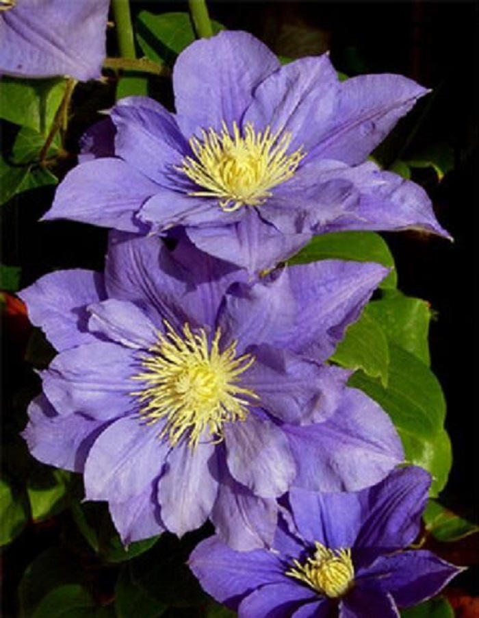 ПрименениеОсобенно хорош для посадки у ограждений, беседок, решёток и других садовых опор.Используется для контейнерного озеленения..Дерево (куст)Побеги взрослого растения могут достигать 2 м. Сила роста умеренная.Цветы (соцветия)Сорт с яркими сине-фиолетовыми махровыми или полумахровыми цветками, распускающимися в мае-июне на прошлогодних побегах. В августе-сентябре на побегах этого года появляются одиночные цветки. По середине нижней стороны лепестка проходит белая полоса. Тычинки жёлтые. Цветки в диаметре составляют от 12 до 15 см.Возраст саженца1 годУсловия выращиванияДанный клематис лучше всего высаживать на солнечном месте – так его цветение будет ярче и обильнее. Но не менее успешно лиану выращивают и в полутени. Среди почв стоит выбрать плодородный супесчаный или суглинистый.Группа обрезки2