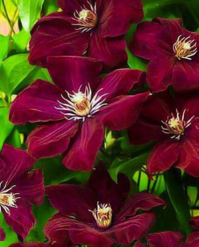 Применение,особенностиКлематис «Красный кардинал» — высокорослый сорт с плетями длиной до 3 метров. Идеально подходит для вертикального озеленения – перголы, террасы, балконы. Используется для высадки в кадках на балконах и лоджиях. Очень эффектный и обильноцветущий сорт.КустРастение в виде лианы, имеющее побеги длиной 3 м.Цветы/соцветияОбразует огромное количество цветков бархатистого пурпурного цвета, диаметром до 15 см. Цветки на солнце не выгорают. Цветение непрерывное и обильное с июня по август, на побегах текущего года. Группа обрезки 3