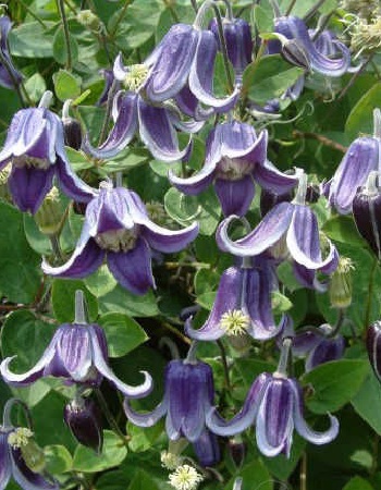 Применение,особенностиПосадить такой клематис можно в любом месте, он прекрасно украсит ваш сад, деревья, клумбы, балкон, террасу, перголу или беседку.КустЭто лиана, вырастающая до высоты 1,5 метров.ЛистьяЛистья ярко-зеленыепродолговатыеЦветы/соцветияЦветки диаметром 4 см, фиолетовые, с отгибающимися лепестками. Цветки подходят для срезки.Возраст саженца1 годУсловия выращиванияХорошо укрыть побеги на зиму.Группа обрезки3