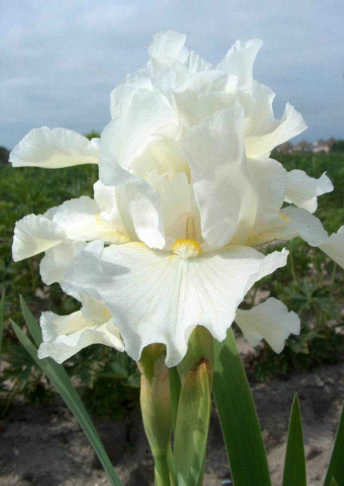 Ирис Авенель – корневищное растение высотой 70см. Мечевидные листья с восковым налетом собраны в вееровидные пучки. Цветки белоснежные, слегка гофрированные, размером 10-15см, источают сладковатый тонкий аромат. Цветет с мая по июнь. Используется для всех типов ландшафтного дизайна (украшение клумб, бордюров, рабаток). Прекрасно смотрится в срезке.