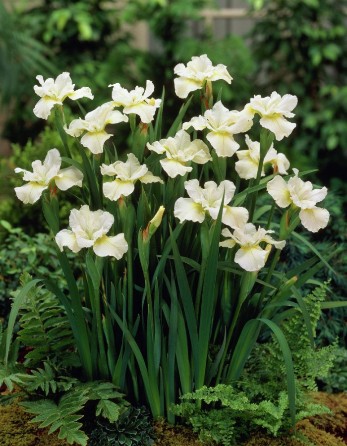 Широкие, плотные, слегка гофрированные по краям белые лепестки с желтовато-зеленым основанием. Сорт обильно цветет в июне, осенью наблюдается повторное цветение отдельными цветками. Аромат слабый.Куст до 70-80 см высотой. Может расти на солнце и в полутени. Плохо переносит застой воды, но обладает высокой засухоустойчивостью и зимостойкостью.