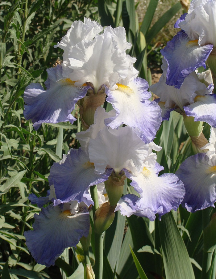 Многолетнее, травянистое растение. Освежающий вид в насыщенных бело-голубых тонах. Стандарты чистого прозрачно-белого цвета, фолы широкие голубые, светлеющие по направлению к светло-жёлтой бородке. Обильно цветущий сорт. Аромат - нежный, цветочный. Премия королевского садового общества Великобритании "За садовые достоинства", 2000 г. Предпочитает солнечные участки, хорошо дренированную почву. Не требует укрытия на зиму.