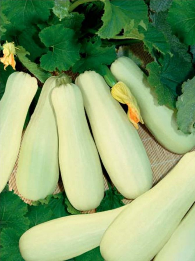 Плоды белого цвета, цилиндрической формы, короткие, с плотной мякотью, весом — 120-130 г, универсального использования, в том числе для цельноплодного консервирования в стадии технической спелости. В плодах высокое содержание сухого вещества -5-7 %. Мякоть плодов плотная, сочная, толстая, семенная камера сухая. Урожайность плодов – 70,0-100,0 т/га.