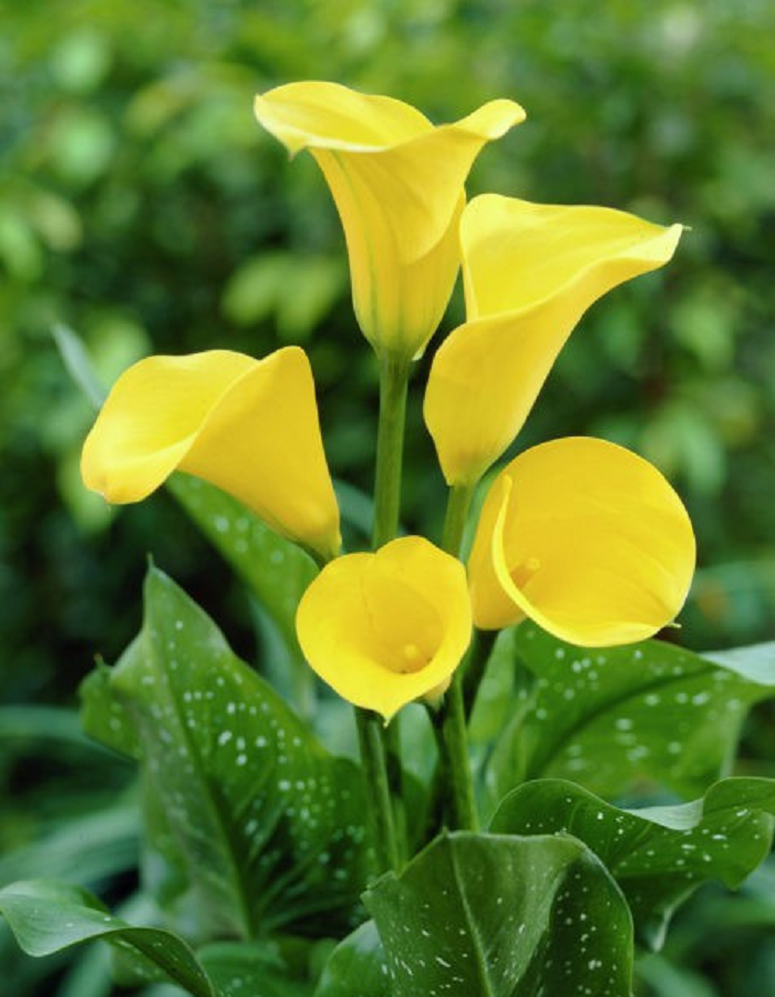 Калла Флорекс Голд относится к группе многолетних клубневых растений. Цветок лимонно-жёлтый, воронкообразной формы. Высота прямых цветоносов достигает 60 см. Листья стреловидные, остроконечные или в форме сердца, темно-зеленые. Диаметр цветка: 8-10см.