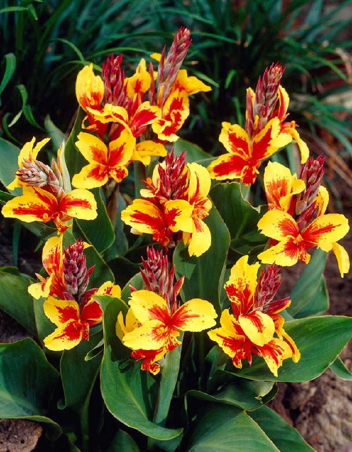 Канна Рейне Шарлотт - многолетнее корневищное растение семейства Канновые. Высота 100-110 см. Соцветие-кисть состоит из крупных оранжевых с широкой желтой каймой цветков диаметром до 12 см. Цветет с середины лета до заморозков. Декоративна весь сезон.