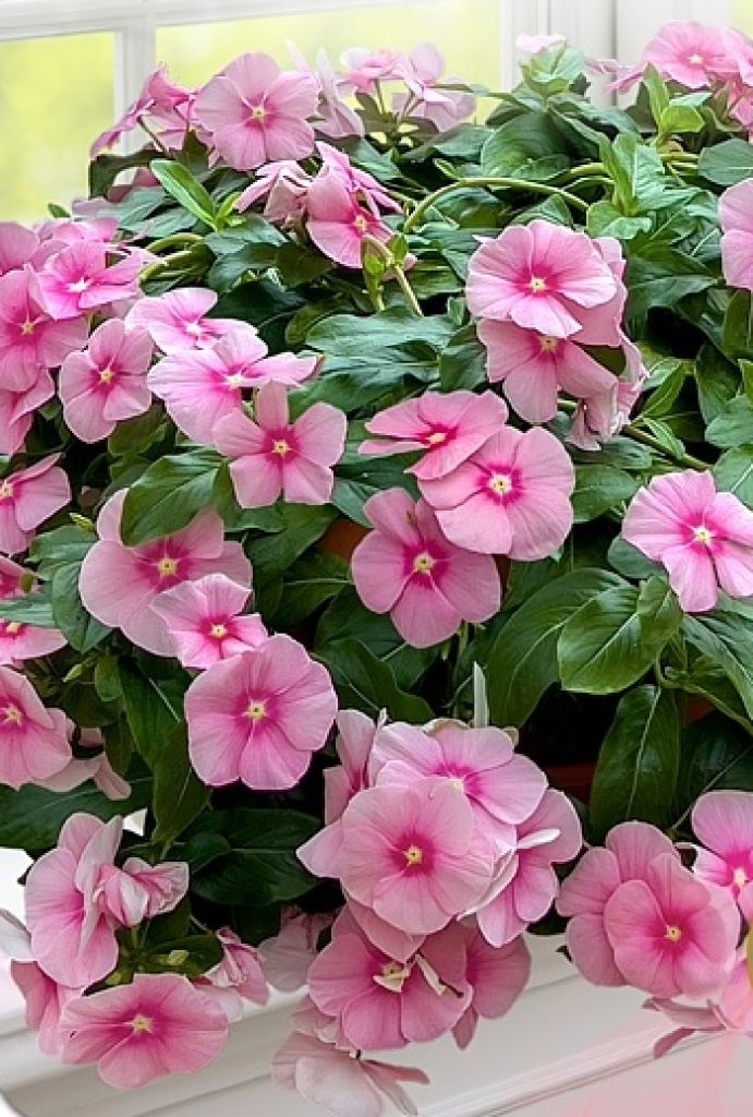 Настоящий ампельный Катарантус, обладающий мощным округлым кустом, идеально подходящий для летних подвесных корзин, смешанных контейнеров и больших ландшафтных клумб. Единственный гибрид, обладающий устойчивостью ко многим штаммам фитофторы. Цветки крупные, диаметром 5-6 см, многочисленные, полностью покрывают растения, сохраняются на протяжении всего сезона. Плотный куст с короткими междоузлиями и красивыми темно-зелеными блестящими листьями.