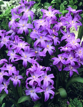 Многолетнее низкорослое растение из семейства Лилейных. Высота хионодоксы всего 10-12 см, иногда она вырастает до 15 см. Листья темно-зеленые, широколанцетные, прикорневые, длиной 8-12 см, их обычно два и они появляются весной одновременно с бутонами. Цветки одиночные или собраны в соцветия-кисти. Околоцветник звездчатый или ширококолокольчатый, из 6 лепестков до 4 см в диаметре нежно сиреневого цвета. Хионодокса хорошо растет и на солнечных участках, и в полутени. Хионодокса любит плодородную, хорошо дренированную почву. Морозостойка, ее не надо укрывать на зиму.
