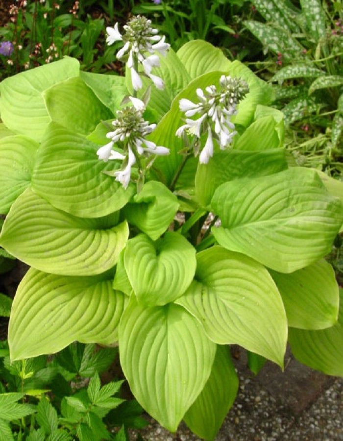 Хоста Banana Kid - Новая хоста с уникальной яркой окраской листьев. Сочетание оттенков лайма и банана. Листья сердцевидные, очень прочные с глубокими рельефными прожилками. Цветки нежно-лавандового оттенка. Куст достаточно компактный. Скорость нарастания средняя. Куст высотой до 40 см. Ширина куста до 60 см. Период цветения июль-август.Зона зимостойкости: 3 (-40 ° С)
