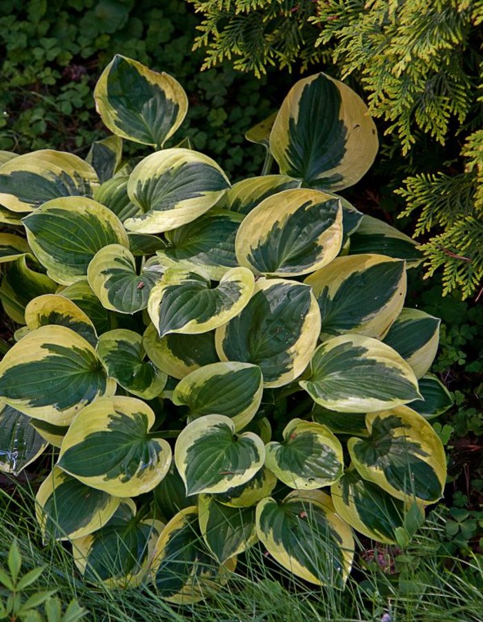 Хоста Вайд Брим - травянистое бесстебельное растение с короткими корневищами и шнуровидными корнями достигает высоты 40-45см. Листья большие, сердцевидные, ярко-зеленые с широкой кремовой нерегулярной каймой. Лавандовые цветки собраны в изящную многоцветковую кисть, которая поднимается над листьями. Используют для бордюров, рабаток, смешанных групп. Очень эффектны в одиночных посадках на фоне газона, особенно пестролистные формы.