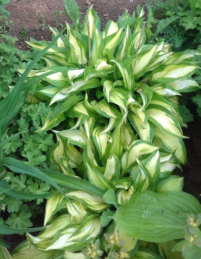 Хоста Черри Берри - травянистое бесстебельное растение с короткими корневищами и шнуровидными корнями, достигает высоты 60см. Листья большие, удлиненные, остроконечные, окраска - белая с темно зелеными краями. Цветки фиолетовые, собраны в изящную многоцветковую кисть, которая поднимается над листьями.