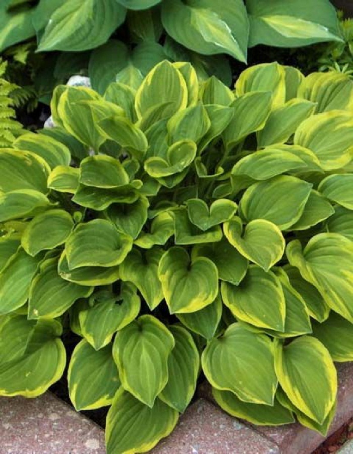 Хоста Голден Тиара - травянистое бесстебельное растение с короткими корневищами и шнуровидными корнями достигает высоты 40см. Листья большие, сердцевидные с волнистыми краями, ярко-зеленые с золотистой каймой. Фиолетово-голубые цветки собраны в изящную многоцветковую кисть, которая поднимается над листьями. Используют для бордюров, рабаток, смешанных групп. Очень эффектны в одиночных посадках на фоне газона, особенно пестролистные формы.