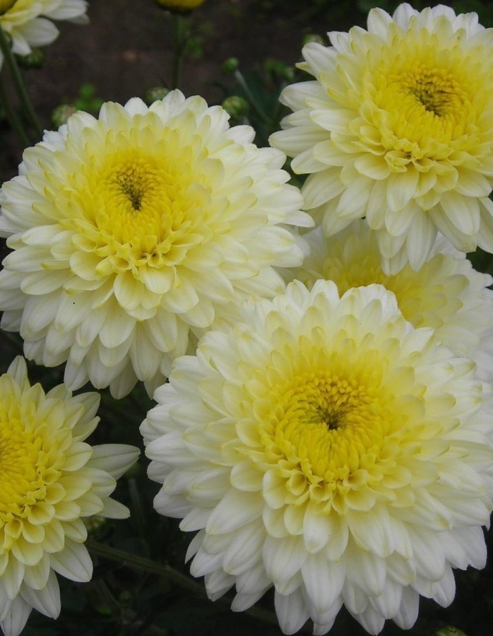 ПрименениеОчень эффектная, оригинальная хризантема, великолепна в срезке.Дерево (куст)Кусты крепкие высотой 50-60 см.Цветы (соцветия)Соцветия пышные, белые с нежно-желтоватым центром, густо махровые, диаметром 6-7 см.ЗимостойкостьЗимостойкость до -18° сВозраст саженца1 годУсловия выращиванияХризантемы предпочитают солнечное, защищенное от ветра место. На зиму хризантемы укрывают с целью сохранения прикорневой поросли. Для этого обрезают кусты на высоту 15 — 20 см над уровнем почвы сразу после цветения. В середине октября кустики окучивают землей, торфом, компостом или биогумусом, а сверху прикрывают опавшей листвой, укрывным материалом. Весной, как спадут морозы, укрытие убирают.