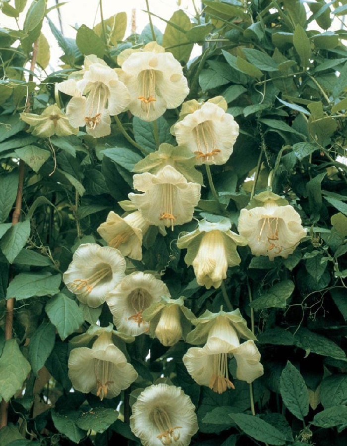 Кобея лазающая - вьющееся растение. Цепляется за опору усиками, образуя многочисленные побеги. Листья перистые. Цветы колокольчатые.Цветёт с июля до заморозков. Используют для вертикального озеленения, на балконах.