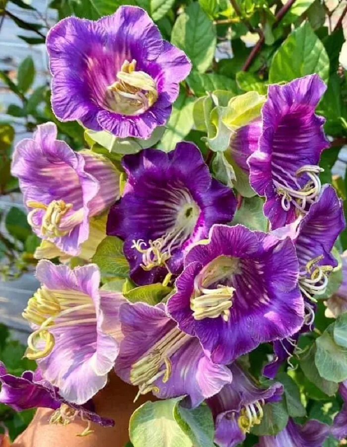 Необычное вьющееся растение. Цепляется за опору усиками, образует многочисленные побеги до 3-4 м. Листья перистые. Цветы колокольчатые, диаметром 6-8 см. Цветёт с июля до заморозков.