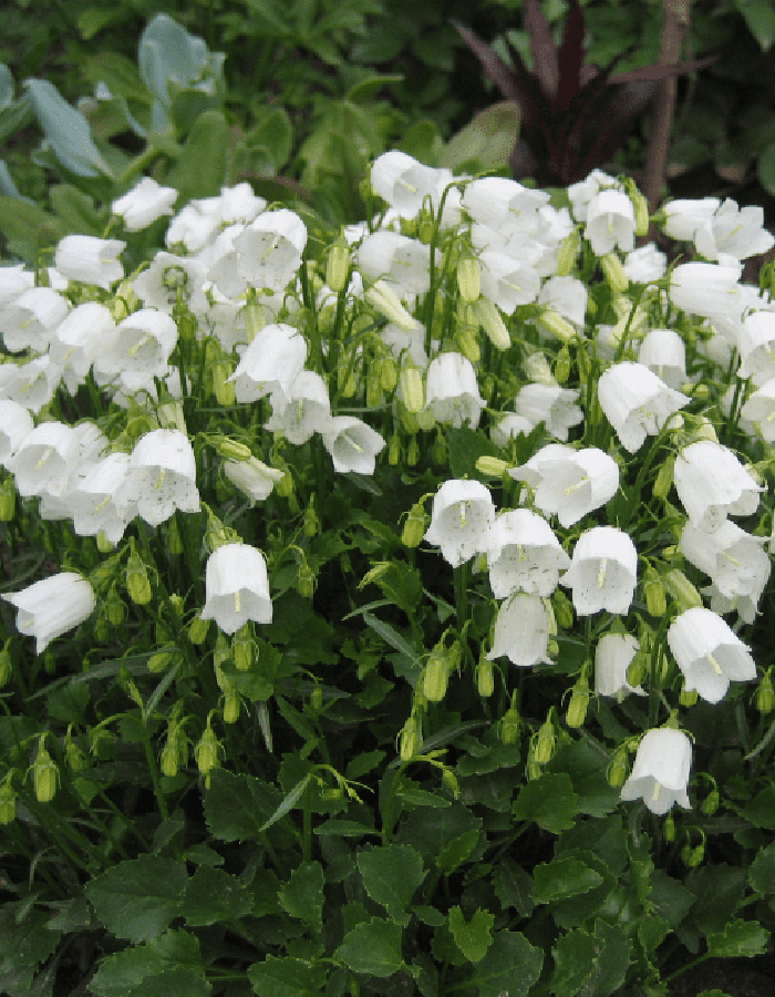 ПрименениеКолокольчик используется в ландшафтном дизайне при декорировании альпийских горок, рокариев, клумб или миксбордеров. Прекрасно сочетается с другими травянистыми многолетниками. Подходит как для одиночных, так и групповых посадок.Дерево (куст)Растение представляет собой пышный округлый куст, на длинных стеблях которого расположены крупные цветки. Высота взрослого растения - около 20 сантиметров. Средняя продолжительность жизни – 3-4 года.Цветы (соцветия)Цветение начинается в июне и длится 30 – 40 дней. Очень обильное. Цветки растут поодиночке, облепляя длинные стебли. При раскрытии цветки напоминают звездочки, диаметром до 2 см. Источают приятный аромат. Цвет - белый.ЗимостойкостьЭто нежное и хрупкое растение удивительно устойчиво к холодам, хорошо переносит зимовку в саду.Возраст саженца1 годУсловия выращиванияПлодородная, хорошо дренированная, суглинистая.
