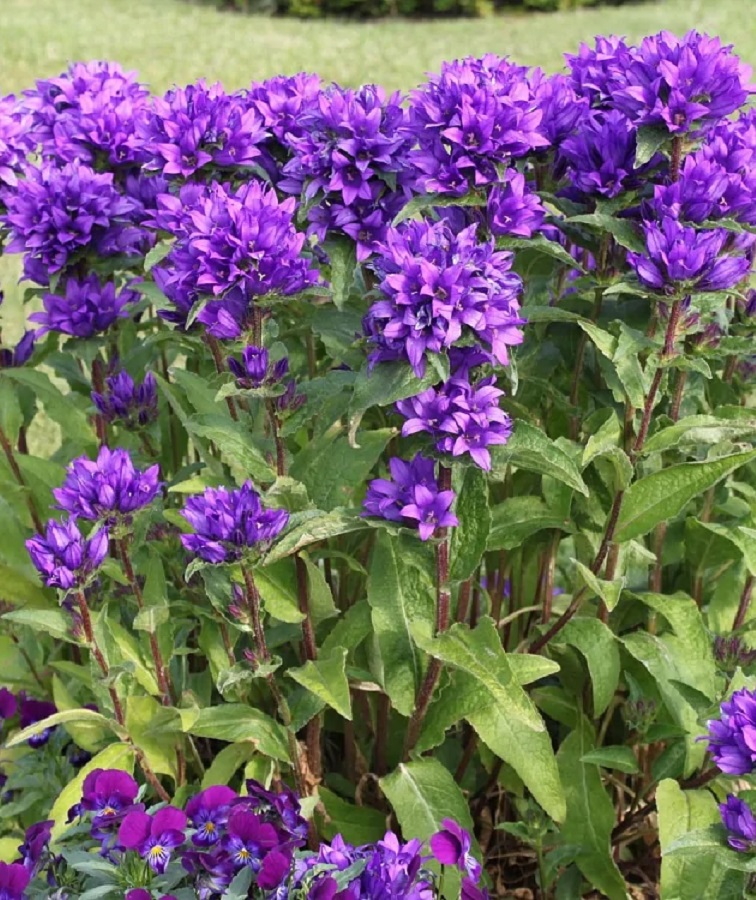 ПрименениеКолокольчик скученный часто выбирается для оформления садового участка.Высадка может осуществляться сразу же на клумбы или же в декоративные контейнеры, объем которых будет от 1 до 3 литров.Дерево (куст)Высота стеблей составляет от 20 до 100 сантиметров. Данные части покрыты пушком серебристого оттенка, хотя иногда бывают и голыми.Цветы (соцветия)Форма листовых пластин, в зависимости от сорта, встречается яйцевидная или вытянутая ланцетная. Появляющиеся цветы окрашены в голубой, белоснежный, светло- или темно-фиолетовый цвет. Диаметр раскрытого бутона составляет всего лишь 3 см. Соцветия напоминают своим внешним видом шары и располагаются на верхушке стеблей.ЗимостойкостьСкученный колокольчик — крайне морозостойкое растение, способное переносить похолодания до - 40 °С и ниже.Возраст саженца1 годУсловия выращиванияВыбирать следует открытые и хорошо освещаемые территории либо же участки с частичной тенью.Если на участке появляется тень, то колокольчик зацветет позже, но сам процесс будет более обильным и красивым. Лучше слегка пересушить грунт, чем избыточно его увлажнить.