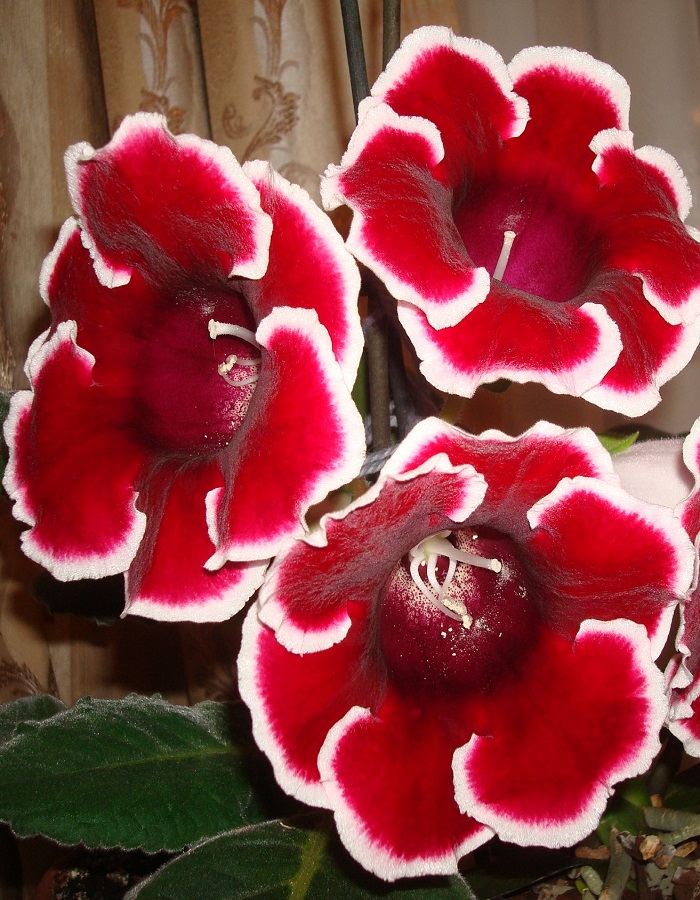 Комнатное растение. Эта серия является низкорослой многоцветковой и крупноцветковой глоксинией, которая прекрасно смотрится в балконных ящиках и кашпо. Растения образуют компактные розетки листьев диаметром 20-25 см. Цветки бархатистые, красные с белой каймой диаметром 8-10 см. Цветение очень обильное - при благоприятных условиях на растении распускается более десятка бутонов одновременно. Неприхотлива в уходе, очень быстро растут из семян.