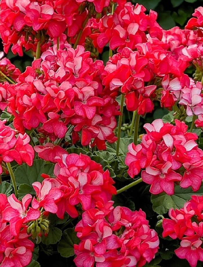 Профессиональная пеларгония с необычной расцветкой. Растения имеют мощный рост, очень плотные и крепкие, высотой 30-40 см, цветы собраны в плотные шаровидные соцветия диаметром до 15 см на коротких цветоносах, что делает их устойчивыми к дождю и ветру. Цветение раннее – цветоносы закладываются еще на стадии рассады. Соцветия очень крупные, на коротких цветоносах. Цветение очень продолжительное. Прекрасное решение как для вазонов, так и для клумбы.
