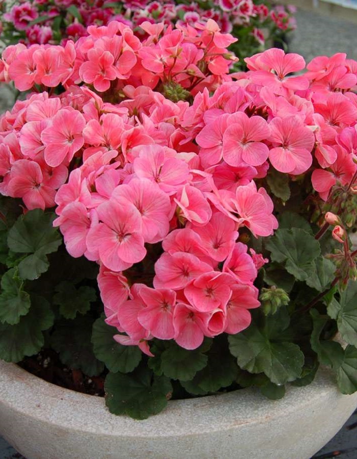 Миниатюрная пеларгония с крупными соцветиями на коротких цветоносах. Выращивается в небольших горшках, как комнатное растение или в балконных ящиках, вазонах, на клумбах.Соцветия плотные, сочных расцветок.Легко выращивается.Высота растения 20-25см.Шаровидные соцветия диаметром 6-7см.Розетки листьев очень плотные.Посадки образуют сплошной цветочный ковёр.