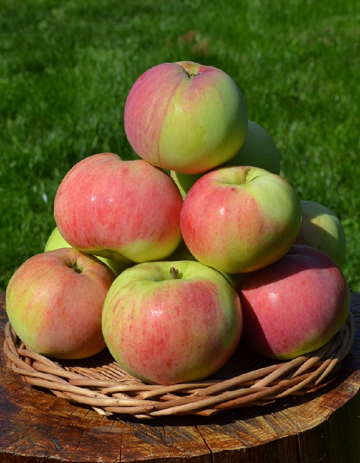 ВНИМАНИЕ!!!! Доставка только ТК и после предварительной оплаты!!!!ПрименениеСорт универсальный.Срок созревания, потребления (срок хранения)Созревание яблок приходится на конец августа и сентябрь.Плоды (ягоды)Плоды средние, со слабо выраженной ребристостью у основания, покрыты тонкой и плотной глянцевой кожурой белого цвета с красными полосами, которые занимают треть поверхности. Вес 1 яблока — от 100 до 250 г. Мякоть белая, сочная, имеет кисло-сладкий десертный вкус.Дерево (куст)Яблоня относится к числу среднерослых, имеет раскидистую крону. Ветки покрыты тёмно-серой корой и растут перпендикулярно относительно ствола. Дерево считается природным полукарликом и вырастает до 3 м в высоту. Листва зелёная с жёлтым оттенком, лист слегка изогнут по центральной жилке.СамоплодностьЭто самоопыляемый сорт, поскольку цветки имеют как пестики, так и тычинки. Завязь образуется на 4-й год жизни дерева. Урожайность имеет нарастающий характер и достигает 130 кг с 1 дерева.Периодичность плодоношенияПлодоношение высокое, но не регулярное.ЗимостойкостьЗимостойкость относительно высокая. Заморозкоустойчив до -34Устойчивость к болезням и вредителямТребуются профилактические обработки.Возраст и высота саженца3 года, высота - 1,5-2м