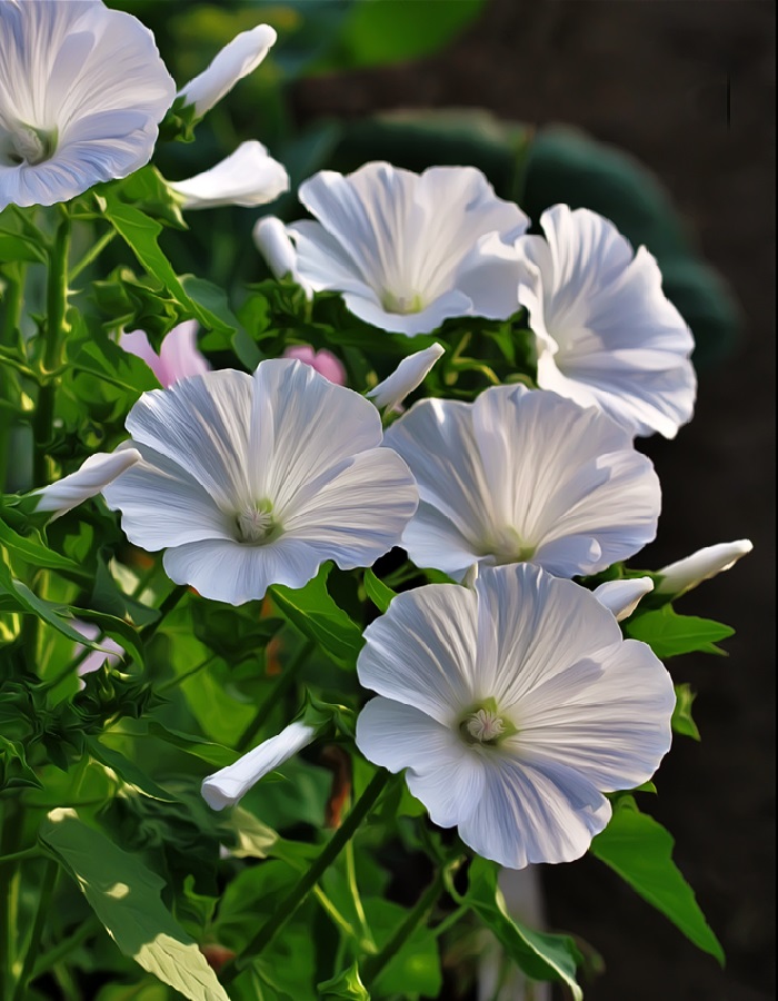 Сорт с ослепительно белыми цветами, наслаждаться которыми Вы сможете до поздней осени. Крупные красивые яркие цветы достигают 10 см. в диаметре. Мощные ветвистые растения высотой Крупные красивые яркие цветы. Мощные ветвистые растения высотой до 80 см. Обильное цветение с июля до конца сентября. Очень эффектны в групповых посадках, миксбордерах, цветы лаватеры хороши для срезки.