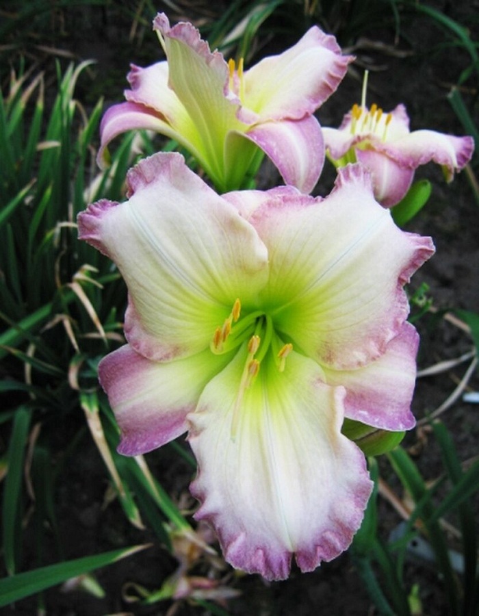 Лилейник Сил оф Эппрувал - корневищное растение высотой 50-60см. Его мечевидно изогнутые листья образуют плотные кусты. Цветки по форме похожи на цветки лилий - воронковидные, с небольшой трубкой, собраны в раскидистые соцветия. По окраске цветки кремовые с лавандовой каймой и зеленоватым горлом, диаметром до 13см. Цветение с июня по август. Используют в групповых посадках, рабатках, миксбордерах, у водоемов, а также одиночно на газоне.