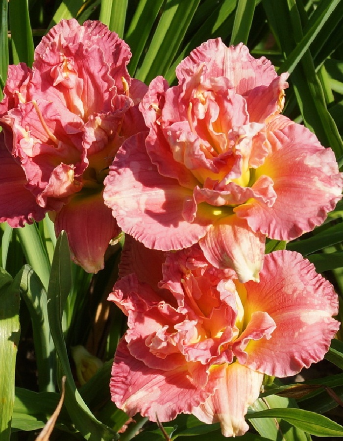 Лилейник Силоам Олин Фрейзер - корневищное растение высотой 50см. Его мечевидно изогнутые листья образуют плотные кусты. Цветки махровые, по форме похожи на цветки лилий - воронковидные, с небольшой трубкой, собраны в раскидистые соцветия. По окраске цветки лососево-розовые, диаметром до 13см. Цветение с июня по август. Используют в групповых посадках, рабатках, миксбордерах, у водоемов, а также одиночно на газоне.