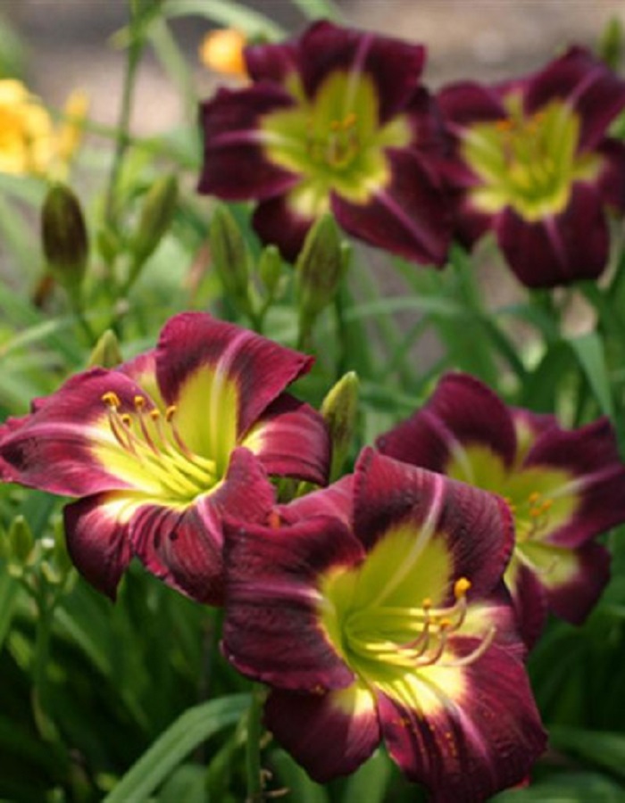 Лилейник Найт Бекон - корневищное растение высотой 50-60см. Его мечевидно изогнутые листья образуют плотные кусты. Цветки по форме похожи на цветки лилий - воронковидные, с небольшой трубкой, собраны в раскидистые соцветия. По окраске цветки темно пурпурно-фиолетовые с зеленым горлом, диаметром до 10см. Цветение с июня по август, повторное – в начале осени. Используют в групповых посадках, рабатках, миксбордерах, у водоемов, а также одиночно на газоне.