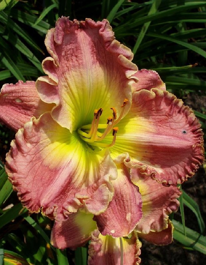 Лилейник Выбор Примадонны - корневищное растение высотой 80см. Его мечевидно изогнутые листья образуют плотные кусты. Цветки по форме похожи на цветки лилий - воронковидные, с небольшой трубкой, собраны в раскидистые соцветия. По окраске цветки ярко розовые с желтой гофрированной каймой и желто-зеленым центром, диаметром до 16см. Цветение с июня по август.
