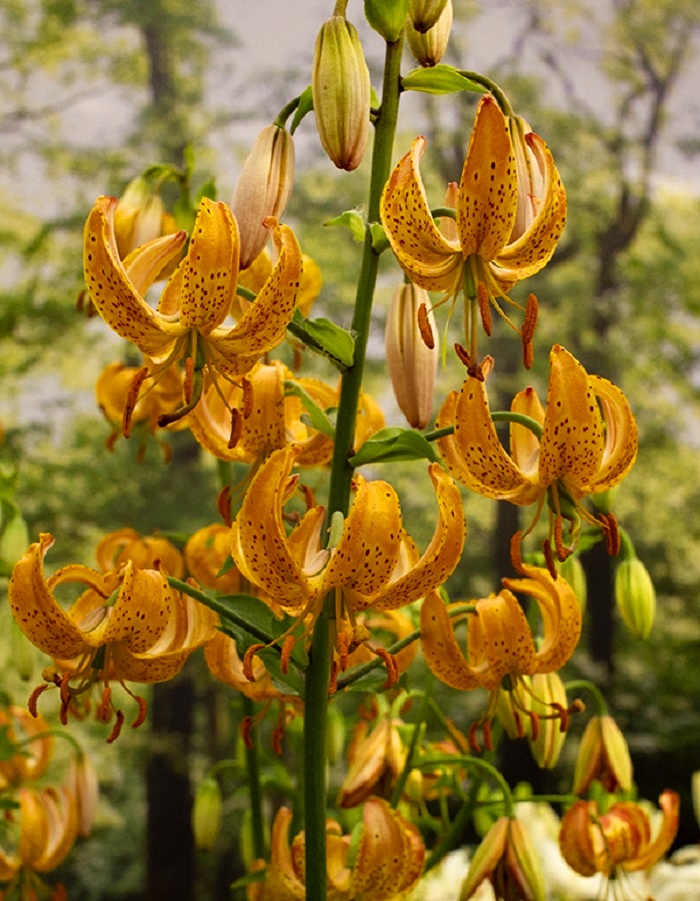 Лилия мартагон или лилия кудреватая - самая морозостойкая группа, в естественных условиях встречается даже в Сибири. Главной особенностью являются пониклые чалмовидные цветки разнообразной окраски. Отличаются своими необычными кудрявыми лепестками. Этот сорт лилии вырастает до 130-150 см. Бутоны раскрываются с богатым золотистым оттенком с коричневыми крупинками, напоминающими веснушки. Эти лилии очень декоративны, отличаются многоцветковостью (до 50 цветков на растении), устойчивы к болезням. В период цветения издают приятный аромат. Лилия может одинаково хорошо расти как на солнечном участке, так и в полутени. Участок должен быть хорошо проветриваемым, но не продуваемым сильными ветрами. Почва должна быть рыхлой, питательной, водопроницаемой, влагоемкой, нейтральной или слабокислой.