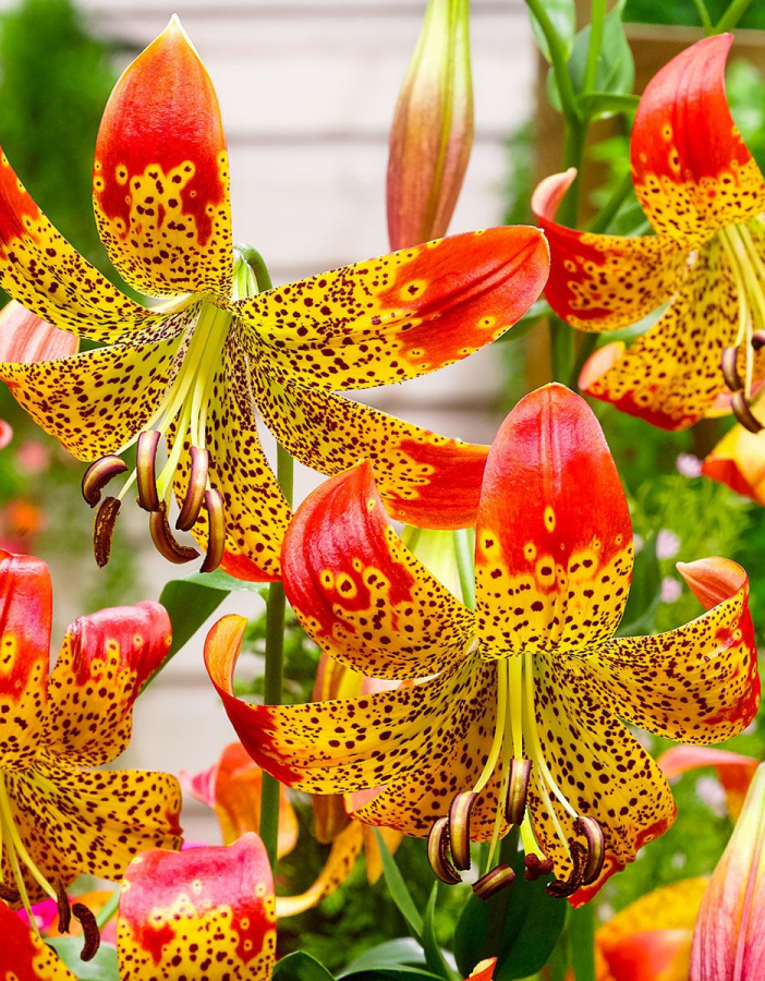 Куст Фьюжн достигает высоты в 100-120 см, характеризуется средней силой роста, имеет высокий мощный стебель и ланцетные зеленые листья. Цветонос образует в среднем около 30 цветков, кроме того, сорт способен формировать воздушные бульбочки на стебле. Цветки крупные, их диаметр достигает 18 см, лепестки яркие, красные, на них наблюдается очень красивый узор из желтых завитков и крапа. Цветы обладают насыщенным, но очень нежным приятным ароматом.