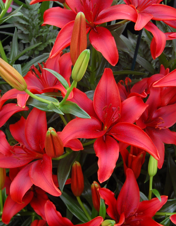 Лилия Ред Хайленд считается одной из лучших красных лилий среди азиатских гибридов. Это эффектное луковичное растение с крупными цветками, со слегка закрученными кончиками, открытой чашевидной формы.Сочетание ярко красных цветов, направленных к солнцу, с яркой насыщенно-зеленой листвой делают ее центром внимания в любом месте Вашего сада или цветника. Цветение сопровождается приятным нежным ароматом. Благодаря мощному цветоносу она очень хорошо чувствует себя даже при сильном ветре и в дождливую погоду.
