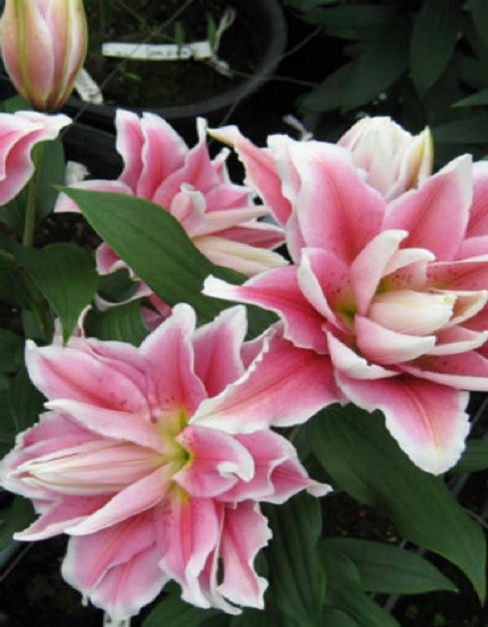 Лилия Касерта относится к Восточным гибридам. Высота растения 90-100 см. Цветки махровые, розовой окраски с белым кантом. Крупные, диаметром до 20 см, с приятным ароматом. Цветет в июле - августе.