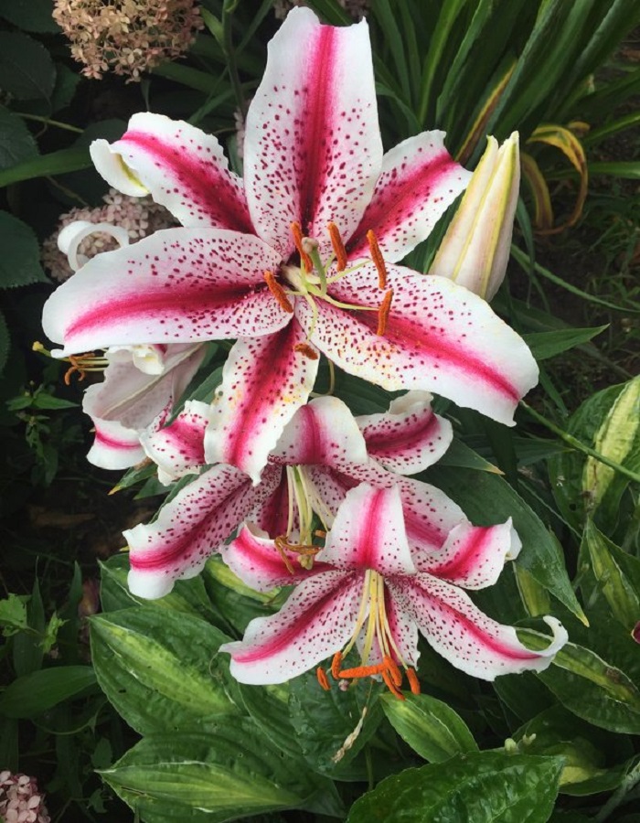 Лилия Диззи – это цветущий луковичный многолетник, обладающий длинным стеблем. Её высота составляет 90-100 см. На одном цветоносе насчитывается около 15 цветков. Цветки у Диззи крупные, диаметр каждого составляет 15-20 см. Окраска у этого сорта белая, цвет насыщенный, аромат тонкий и приятный.