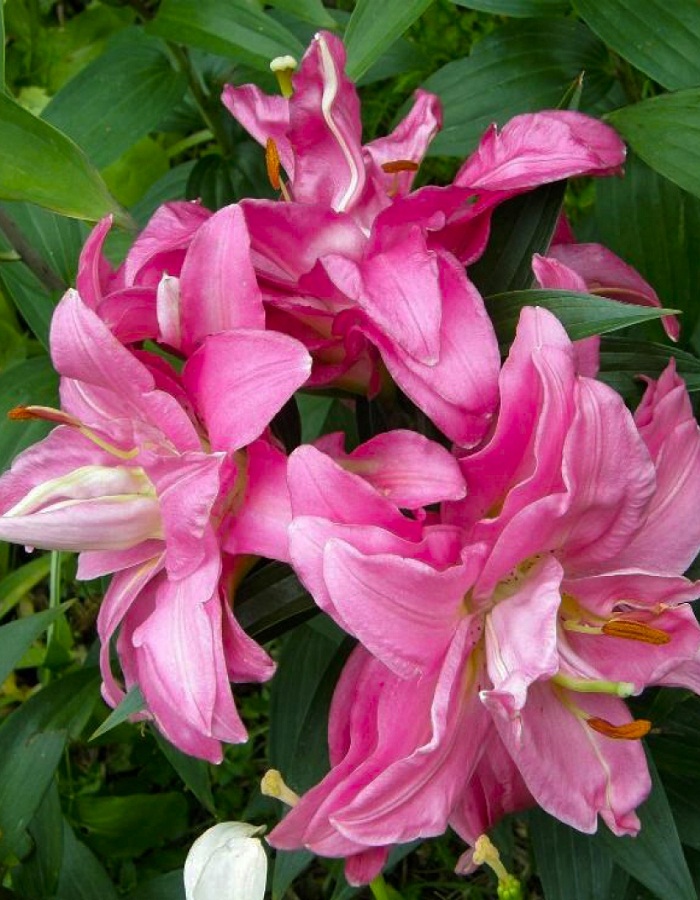 Лилия Double Surprise - растение с махровыми цветками, восточный гибрид. Высота растения - 120 см. Цветы ароматные, диаметром 22 см. На одном стебле растения появляются до десяти махровых цветков, напоминающих фантастические звезды. Их малиновый оттенок заметен издалека, при этом нет сомнений в том, что перед нами растение изысканное и элегантное. Многочисленные лепестки образуют дивную картину, достойную элитного цветника. Цветение наблюдается в августе-сентябре. Эти лилии предпочитают солнце или полутень, хорошо переносят морозы.