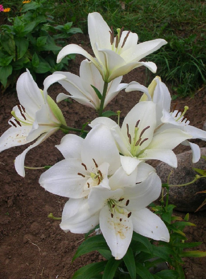 Цветы этого гибрида белоснежные с едва различимыми вкраплениями и темно-бордовыми тычинками в центре. Лепестки не махровые, в полном роспуске бутоны выглядят сдержанно и элегантно. Средний диаметр цветка – 24 см. На растении бутоны располагаются так, что лепестки смотрят вверх. Это позволяет в полной мере оценить их красоту.