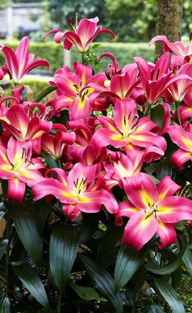 Лилия Эмполи (ОТ- гибрид) – луковичное растение высотой 130см. Имеет прочные светло-зеленые стебли с 5-8 цветками и очередные листья. Цветки воронковидные, направлены в стороны, малиново-красные с желтым центром, диаметром до 20см, ароматные. Цветет в июле-августе. Используют в групповых посадках, миксбордерах, клумбах и на срезку.