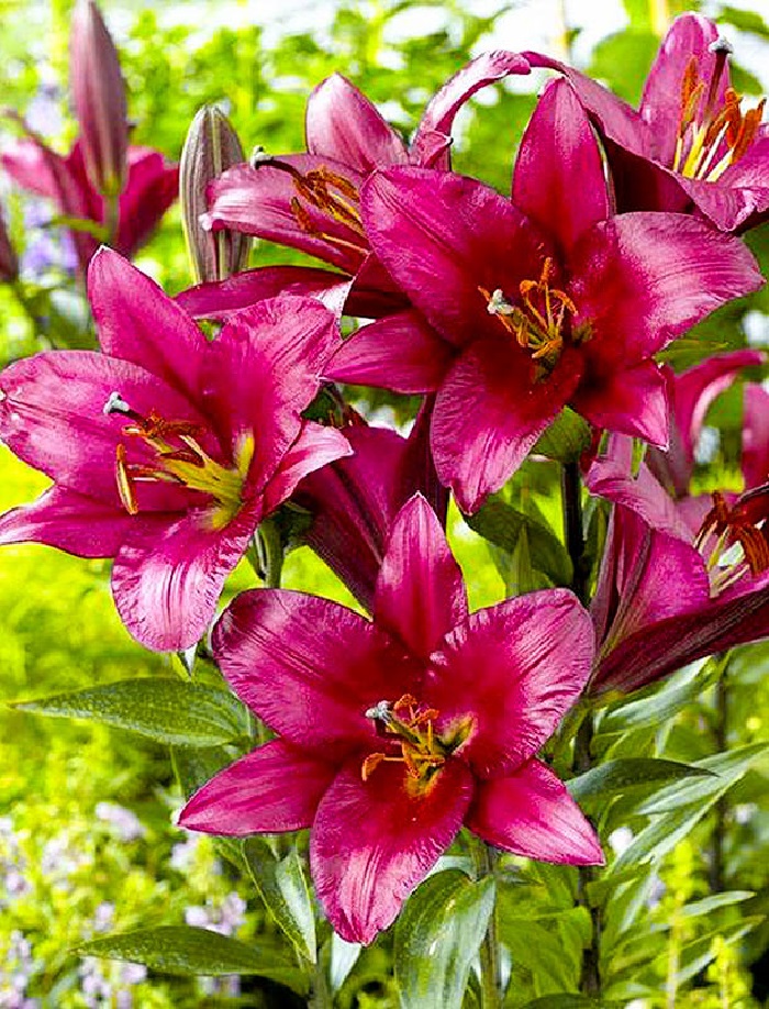 Лилия Пурпл Принц (ОТ- гибрид) – луковичное растение высотой 150см. Имеет прочные светло-зеленые стебли с 5-8 цветками и очередные листья. Цветки воронковидные, направлены в стороны, темно пурпурные, диаметром до 22см, ароматные. Цветет в июле-августе. Используют в групповых посадках, миксбордерах, клумбах и на срезку.