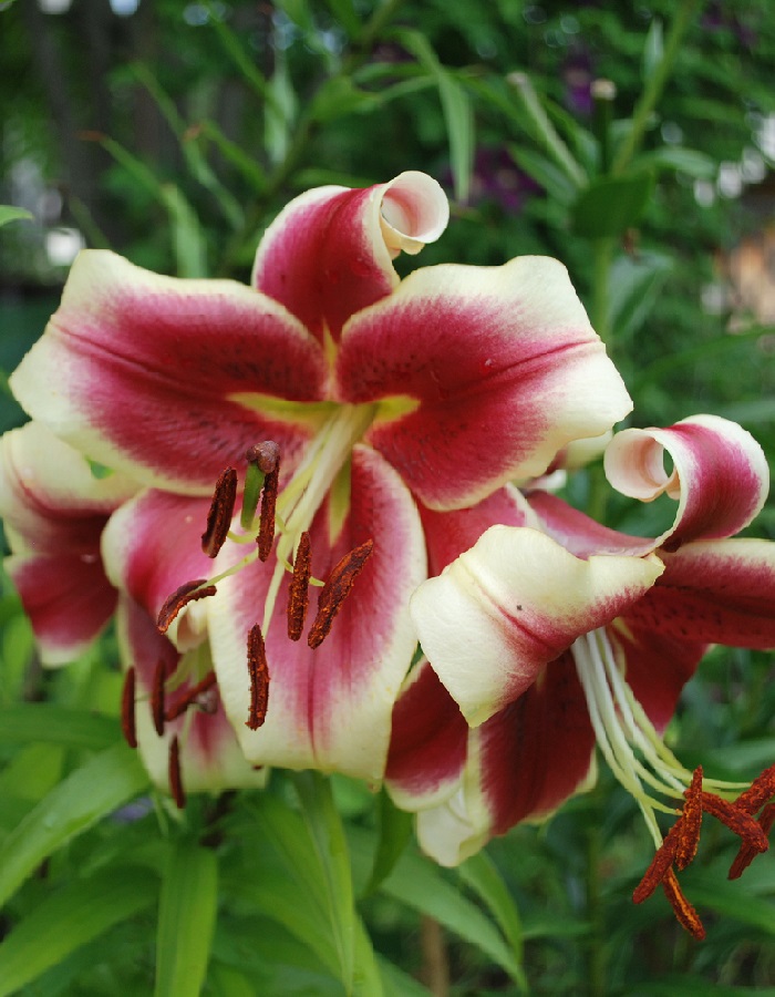 Лилия Холланд Бьюти (ОТ- гибрид) – луковичное растение высотой до 100см. Имеет прочные светло-зеленые стебли с 5-8 цветками и очередные листья. Цветки воронковидные, направлены в стороны, малиновые с широкой желтой каймой, диаметром 20см, ароматные. Цветет в июле-августе. Используют в групповых посадках, миксбордерах, клумбах и на срезку.