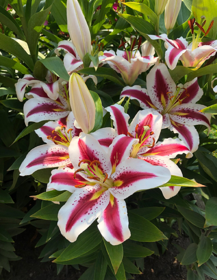 Восточная лилия Hachi любима садоводами за огромные ароматные цветки и неприхотливость. На высоком крепком цветоносе высотой до 110 см формируются несколько крупных, до 20 см в диаметре, цветков. Лепестки белоснежные, с ярко-розовой серединкой. Сорт предпочитает почвы с повышенной кислотностью, солнечные или полутеневые места.