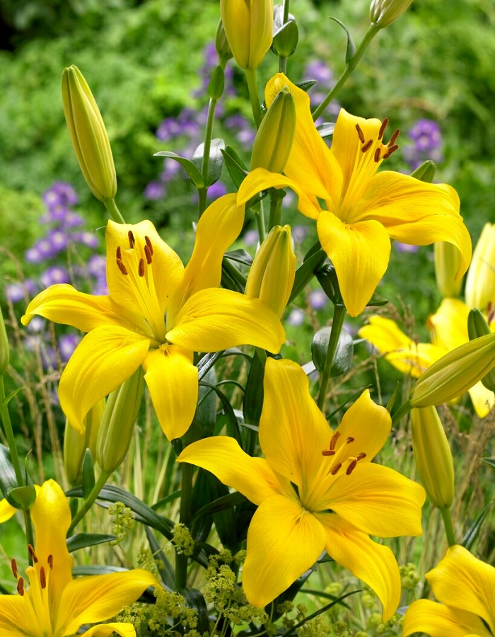 Красочная лилия Yellow Strike имеет насыщенный лимонно-желтый цвет и деликатный, сладкий аромат. Диаметр цветка может достигать 20-25см. Лилия достаточно стойкая к негативным факторам и крепкая. Стебель прямой, до 100-130см в высоту, густо покрыт темно-зелеными листьями вытянутой формы.