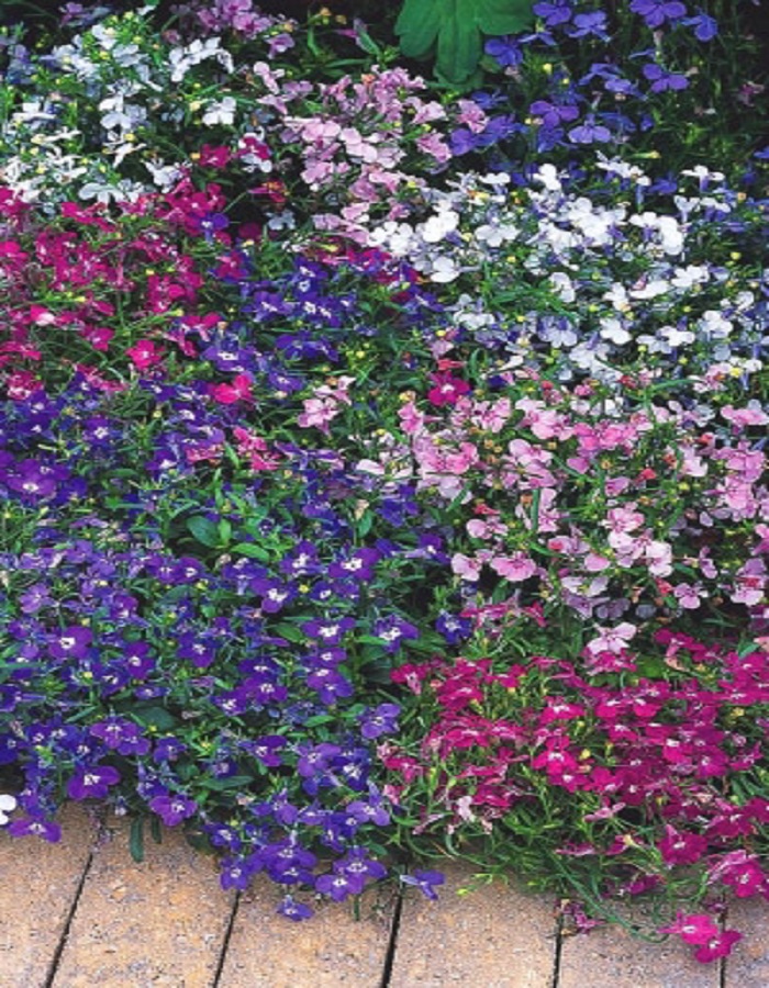 Растения образуют пышный каскад поникающих побегов длиной до 30 см, усыпанных множеством изящных цветочков. Цветение обильное и длительное - с июня до заморозков. В садовых цветниках каскадная лобелия приобретает стелющуюся форму.