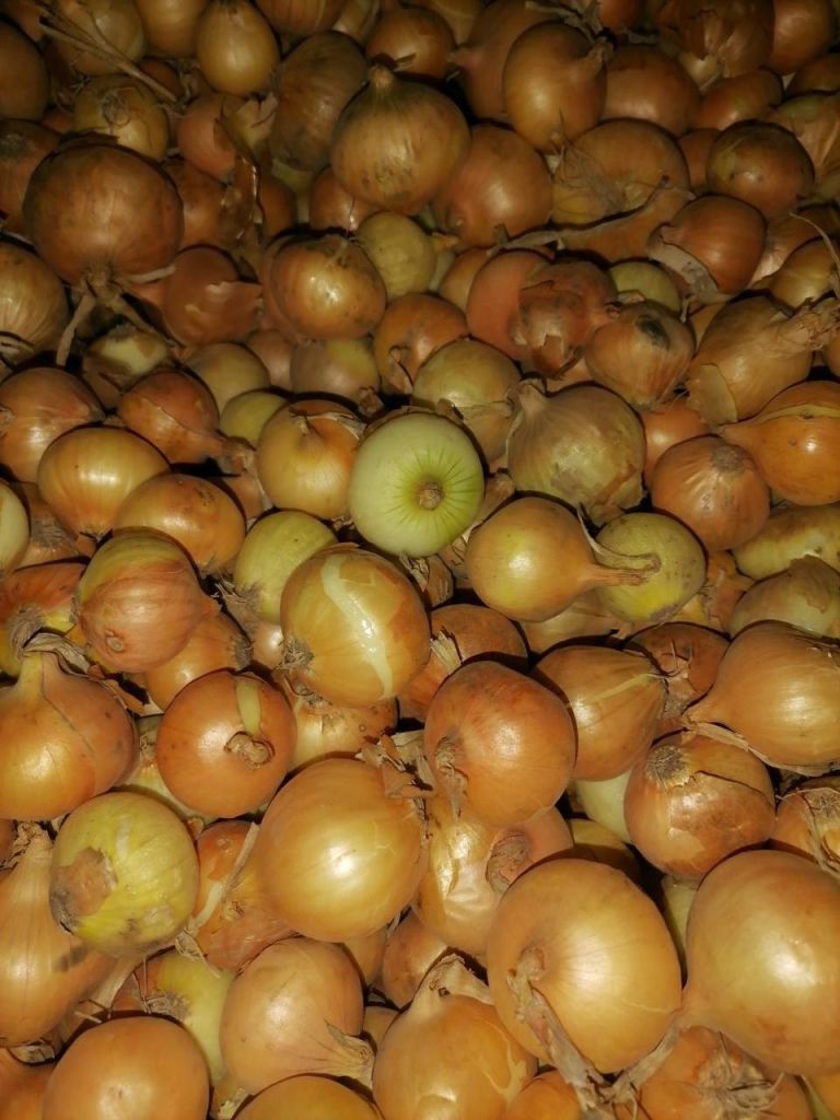 Лук-севок проходит калибровку на линии с отверстиями 1см. Все луковки, что меньше 1см попадают в один отсек, а остальные в другой. Далее отбирают луковицы более 3х см. Это лук-выборок. Следовательно фракция от 1 до 3 см уходит на фасовку и далее к покупателю.