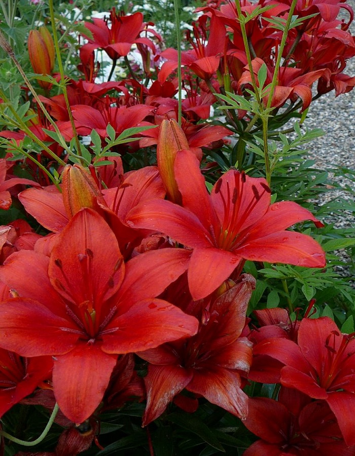 Цветки этой лилии имеют потрясающий красный оттенок с бордовым крапом и с рыжими тычинками. Эта лилия зацветает одной из самых первых - в начале июня. Цветки крупные, в среднем 20 см в диаметре, и очень ароматные. Высота растения 90-100 см.