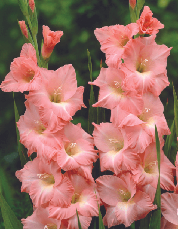 Гладиолус Роуз Суприм. Нежно-розовые цветки с загнутым, чуть гофрированным краем и тончайшими белыми полосками посередине лепестков пленяют каждого, кто на них посмотрит! Этот сорт великолепно смотрится в срезке, отличается продолжительным цветением. Высота 100-120 см, диаметр цветка 15 см. Время от посадки до цветения: около 90-100 дней.