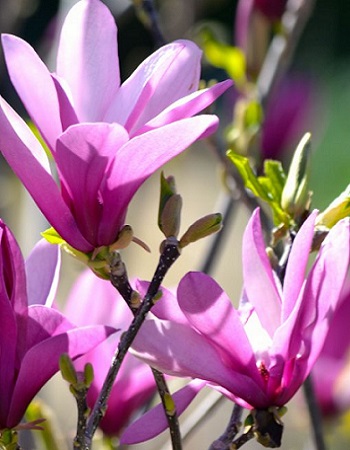 ПрименениеБетти - медленно растущий кустарник или дерево высотой 2,5 - 4 м. Восхитительные цветки массово распускаются с середины апреля до начала мая, до появления листьев. Чашевидные, 20 см в диаметре, с насыщенным цитрусовым ароматом! Лепестки снаружи окрашены в красновато-фиолетовые тона, внутри - белые. В середине лета цветение повторится, но лишь в виде отдельных цветков. Листья овальной формы, до 15 см длиной. Распускаются с медно-красными оттенками на кончиках, к концу весны становятся тёмно-зелёными, а осенью окрашиваются в жёлтые и бронзово-медные тона. Магнолия эффектна в любое время года!КустПлотный кустарник с круглой кроной.ЛистьяЛистья овальной формы, до 15 см длиной. Распускаются с медно-красными оттенками на кончиках, к концу весны становятся тёмно-зелёными, а осенью окрашиваются в жёлтые и бронзово-медные тона.Цветы/соцветияЦветочные бутоны пурпурно-красные. Цветки чашевидные с длиной лепестка до 20 см, внутри белые, снаружи красно-пурпурные. Цветет с середины апреля до начала мая.ЗимостойкостьЗимостойкость средняя, до -29 °C.Возраст саженца1 годУсловия выращиванияПочва: легкая, умеренно влажная, богатая органикой, слабокислой или нейтральной реакции. Полив: регулярный, даже постоянный: почва под магнолией все время должна быть чуть влажной. Особенно важен регулярный полив для саженцев возрастом до трех лет.