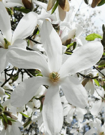 ПрименениеВ саду становится очень празднично, когда в нем поселяется Магнолия Кобус (Кобуси) относится к Семейству Магнолиевые, род Магнолия. Участок насыщается тропической атмосферой и приятным ароматом. Дерево или кустарник укрыто крупными цветами и интенсивно-зеленой листвой. Некоторые виды магнолии относятся к зимостойким культурам, которые способны выдерживать морозы до – 30 0С.КустЛистопадное дерево в дикой природе может вырасти до 25 м в высоту, а в окультуренном виде – до 10 м.ЛистьяЛиственные почки имеют небольшую шелковистую опушку с ворсинками. Листовая пластина яйцевидной формы с острой вершиной. К основанию она клином. Длина листа 8-13 см.Цветы/соцветияЦветы магнолии Кобус молочно-белого цвета с приятным ароматом. В диаметре они равны 10 см. В каждом из них по три небольших чашелистика и шесть лепестков. При раскрытии цветы показывают пурпурные жилки и множество тычинок. В гинецее множество плодолистиков.Цветет магнолия Кобус в середине весны, пока еще не распустилась полностью листва, и длится цветение около двух недель. Обычно это конец апреля.ЗимостойкостьЗимостойкость средняя, до -29 °C.Возраст саженца1 годУсловия выращиванияПочва: легкая, умеренно влажная, богатая органикой, слабокислой или нейтральной реакции. Полив: регулярный, даже постоянный: почва под магнолией все время должна быть чуть влажной. Особенно важен регулярный полив для саженцев возрастом до трех лет.