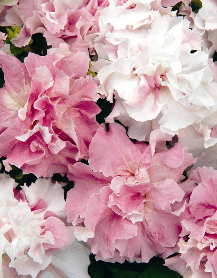 Декоративный однолетник с завораживающими махровыми цветками высотой до 30 см. Кустики густые и широкие. Некоторые стебли красиво спадают вниз, формируя каскад. Цветки нежной бело-розовой расцветки, источают нежный аромат, крупные, диаметром до 10 см. Цветет обильно с июня до заморозков. Используют в цветниках, для посадки в балконные ящики и подвесные кашпо. Хорошо переносит пересадку в цветущем состоянии.